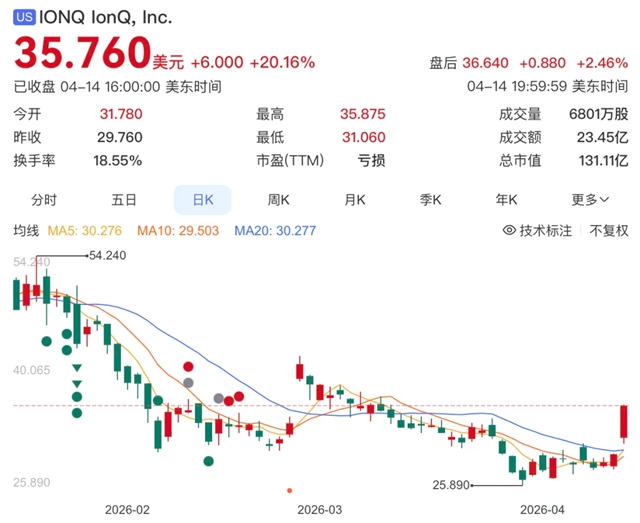 受该消息影响,美股量子计算概念股股价暴涨。截至收盘,SEALSQ上涨21.03%;IonQ涨20.16%;D-Wave Quantum涨15.84%;Quantum Computing涨11.55%;Rigetti Computing涨11.50%。
