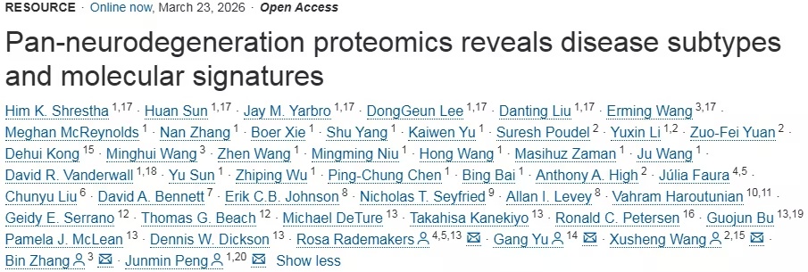 神经退行性疾病形成一个纠缠的生物学网络,具有重叠的分子特征和症状。为了解码这一复杂性,由St. Jude儿童研究医院的科学家领导的一个多机构合作团队开发了泛神经退行性疾病图谱(pan-neurodegeneration atlas, PanNDA)。该图谱是对神经退行性疾病“蛋白组”的全面调查,包含关于蛋白质水平、修饰和相互作用的信息。这一资源今天发表在《Cell》上,提供了一个广泛的基于蛋白质的