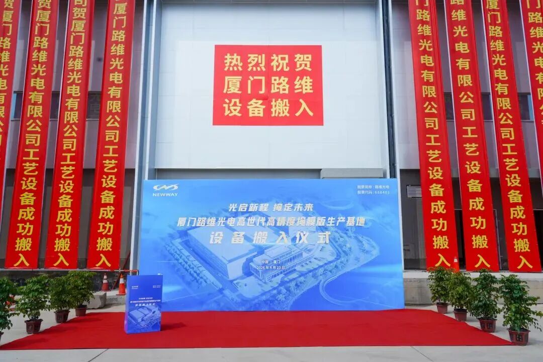 文章内容及信息来源:路维光电如有侵权,请联系我们删除2026年4月23日,总投资20亿元的重大产业项目——厦门路维光电高世代高精度掩膜版生产基地迎来首批核心工艺设备正式搬入。随着设备缓缓起吊、平稳移入洁净厂房,该项目正式从“工程建设阶段”转入“工艺设备安装调试阶段”,向着2026年年中试产目标迈出坚实一步。厦门路维设备搬入仪式现场仪式现场,路维光电董事长杜武兵先生、执行总裁肖青女士携管理团队出席,