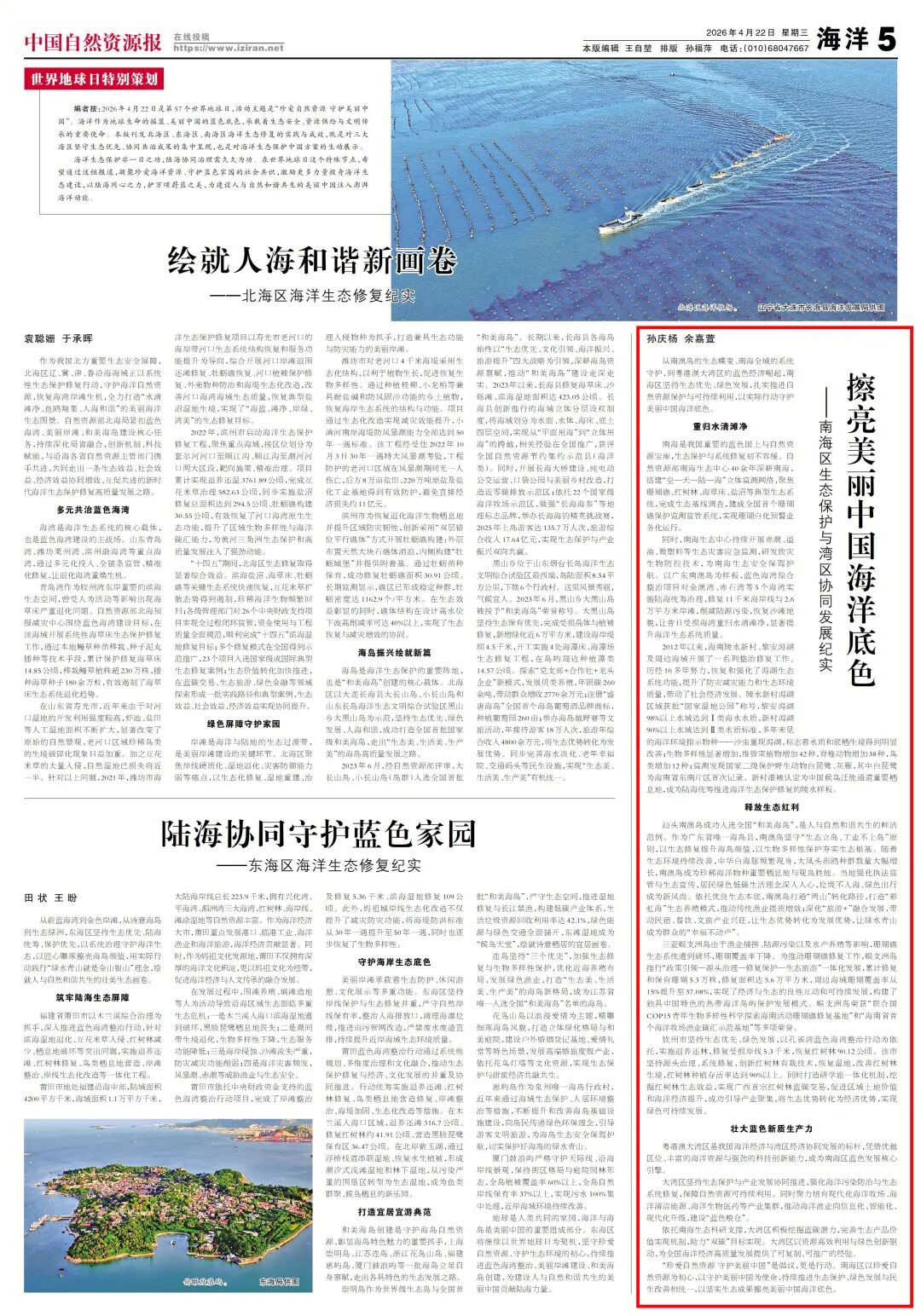 从南澳岛的生态蝶变、南海全域的系统守护,到粤港澳大湾区的蓝色经济崛起,南海区坚持生态优先、绿色发展,扎实推进自然资源保护与可持续利用,以实际行动守护美丽中国海洋底色。广东省南澳岛重归水清滩净南海是我国重要的蓝色国土与自然资源宝库,生态保护与系统修复刻不容缓。自然资源部南海生态中心40余年深耕南海,搭建“空—天—陆—海”立体监测网络,聚焦珊瑚礁、红树林、海草床、盐沼等典型海洋生态系统,完成生态基线调