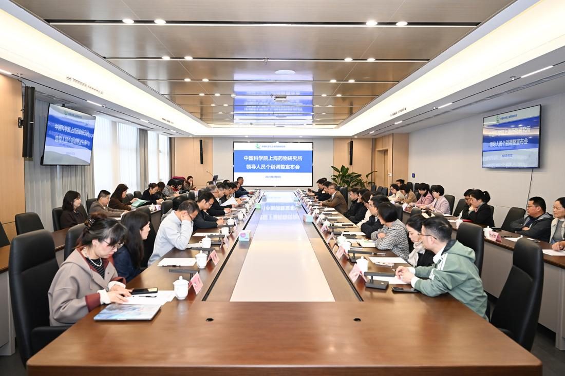 2026年4月3日,上海药物所领导班子个别调整宣布会在牛顿路园区第六会议室召开。中国科学院副秘书长、上海分院分党组书记、院长,沪区党委书记王华,上海市委组织部宣教科技干部处和上海市科技党委组织人事处有关同志出席会议。上海药物所领导班子成员、所务委员、两委委员、研究中心主任、支撑部门负责人、党支部书记及职能部门负责人参加会议。会议由上海分院人事人才处处长胡嘉主持。胡嘉宣读中共中国科学院党组的任免决定