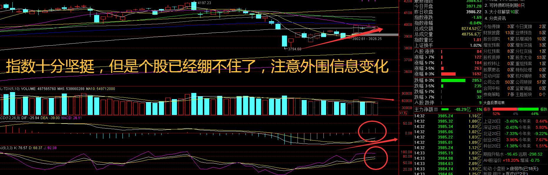 2026年04月13日 14:45:43【盘面分析】外围金融局势基本稳定,不管这2周是在“筹集兵力”,还是真正意义上的和谈走向止战,现阶段肯定是上半年以来“最好的日子”,即使机构资金不管大举进场,这里也不会轻易减仓,毕竟行情真的走起来,手里没货比被套住更难受!现在A股最大的问题是“指数强,个股弱”的行情延续,一些资金还是报团取暖为主,不难看出科技龙头“三只金花”不断刷出阶段新高,其它个股却是惨不忍