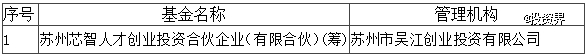原标题:苏州人才壹号基金第二批拟出资投资界(ID:pedaily2012)4月13日消息,苏州天使母基金发布公告,公示了2026年度苏州人才壹号创业投资合伙企业第二批拟参股子基金公示,母基金拟出资1支子基金——苏州芯智人才创业投资合伙企业(有限合伙)(筹),管理机构为苏州市吴江创业投资有限公司。根据《苏州人才壹号创业投资基金管理办法(试行)》(苏创投〔2025〕29 号)规定,经机构申报、项目初审