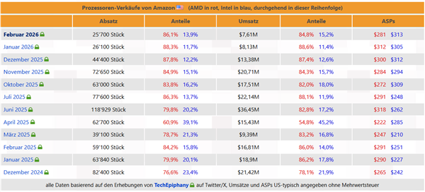 快科技3月23日消息,在内存价格飙升和供应短缺的持续压力下,PC装机市场遭遇重创,数据显示,亚马逊美国站过去三个月的CPU销量,比去年同期的一半还要低。 回顾过去几个月,内存价格经历了令人咋舌的涨幅,AI行业对内存的庞大需求远超现有产能,导致供应缺口持续扩大,业内普遍预计这一短缺状况将延续至2026年甚至2027年。 根据3DCenter的报告,2026年2月CPU销量仅为25700颗,这一数字与