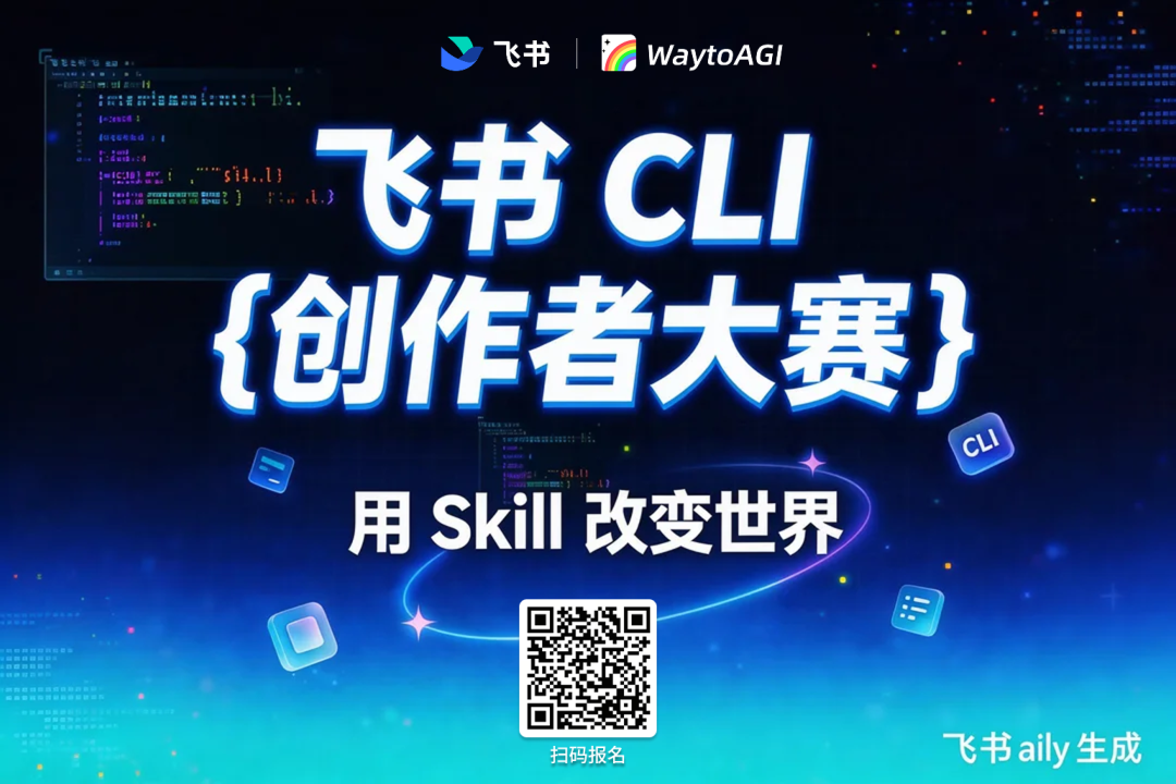飞书 CLI(命令行界面)在3月28日正式开源了!这意味着,你现在可以用代码给飞书AI助理写“技能”,让它从一个通用助手,变成真正懂你业务的专属Agent。而围绕这次开源,飞书联合WaytoAGI发起了一场飞书 CLI 创作者大赛。不管你是写代码的开发者,还是做内容的创作者,都能参与。奖品包括Mac Mini、京东卡、安克AI录音豆等等,门槛不高,值得一试!长按扫码/阅读原文,查看活动详情:我们和