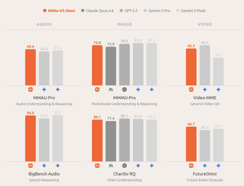 MiMo-V2-Omni则是面向复杂多模态交互的全能型选手。它融合了文本、视觉、语音的全模态感知能力,在音频理解上甚至超越了Gemini 3 Pro,支持超过10小时的连续长音频深度理解;图像理解能力也超过Claude Opus 4.6,逼近Gemini 3 Pro。在实际应用场景中,它可以像人一样操控浏览器——自主打开小红书研究手机配置、跨店比价,甚至转接客服砍价。