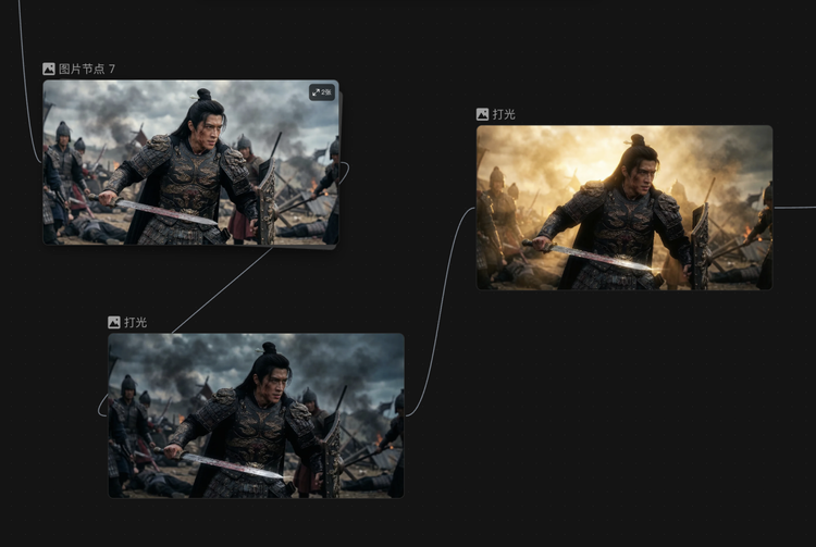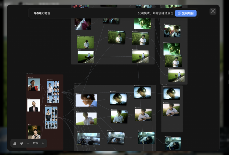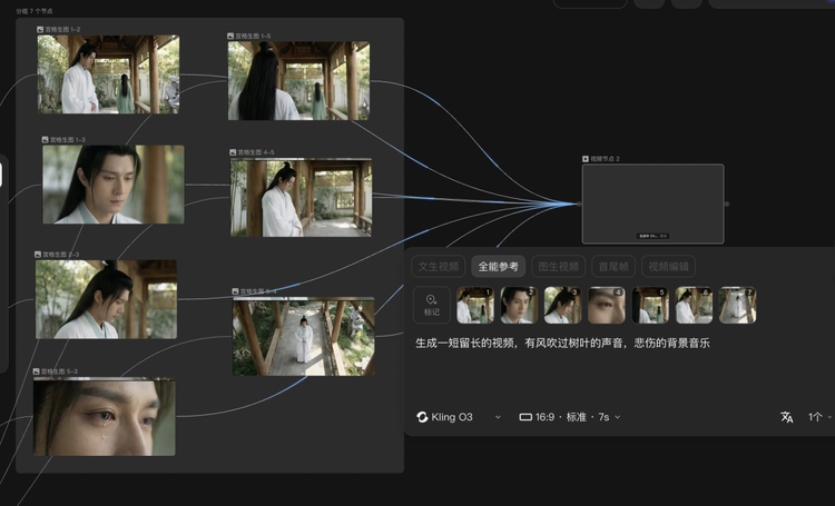 这一产品形态的逻辑,其实很符合视频创作本身的结构——视频不是一张图,是从一帧到下一帧、彼此之间有关联的连续叙事。把视频拆成一个个关键节点分别处理,节点之间保持衔接,最后串成一条完整的叙事链——这让视频创作从“生一段、祈祷它能用”,变成了可以分段推进、分段校验的流程。