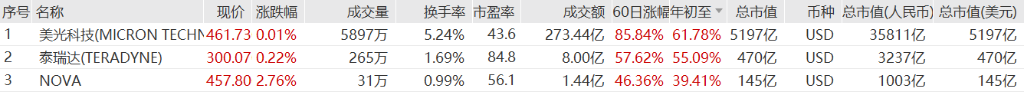 (费城半导体指数中年初至今表现前三的成分股)