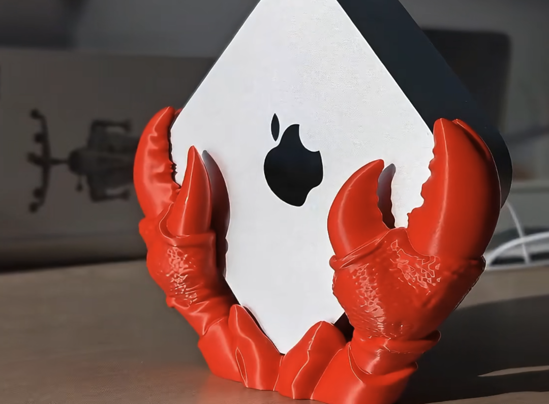 社区里到处是龙虾派对、龙虾周边,有人给 Mac Mini 做了虾钳造型的支架。