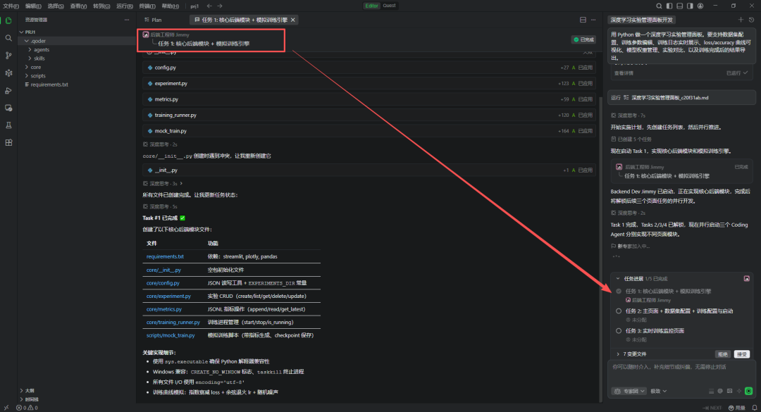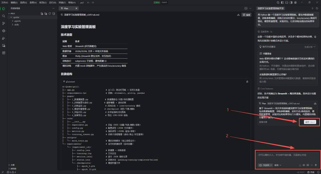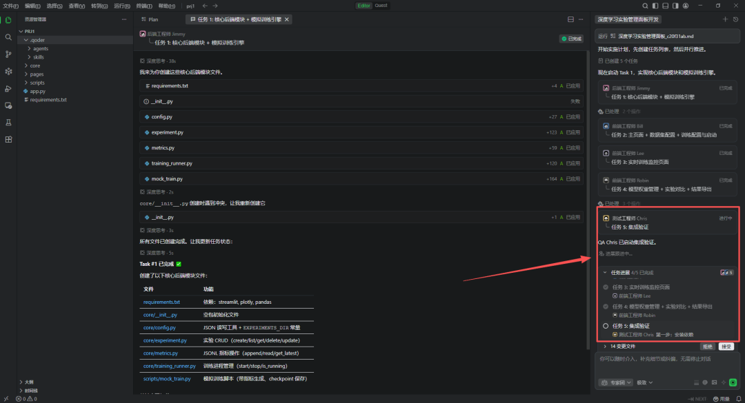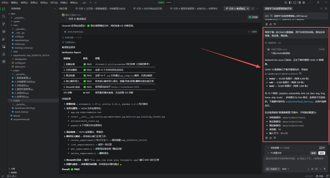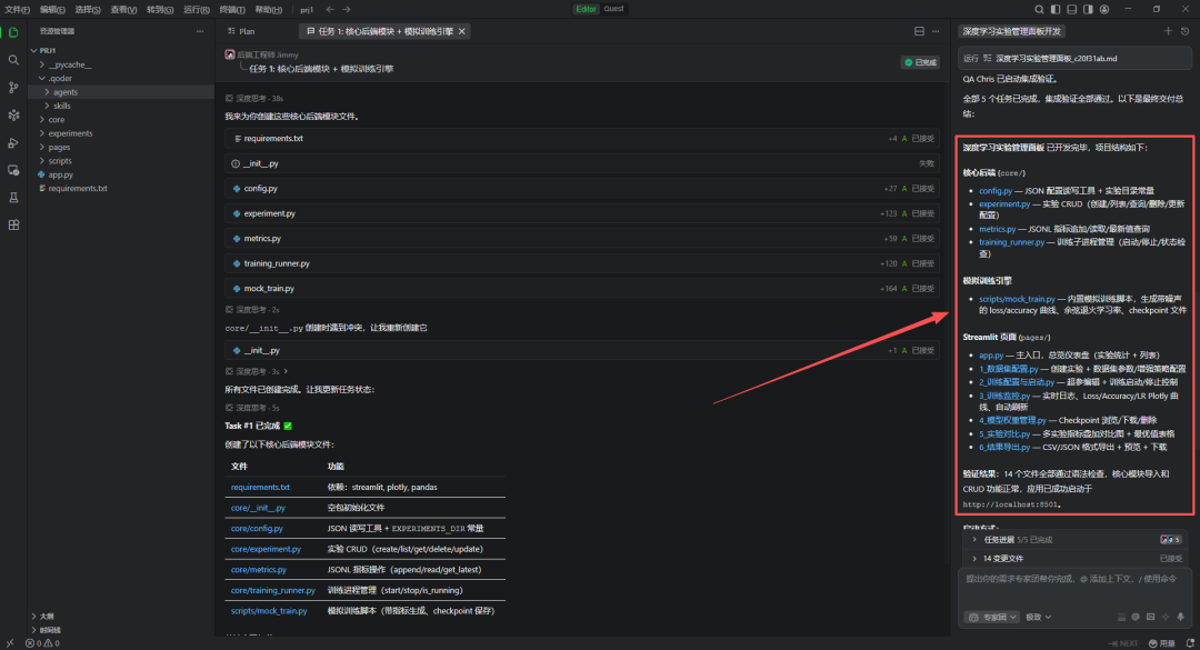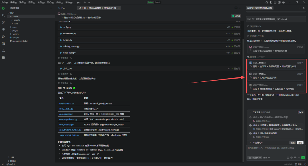 上周末因为教学需要,我想做一个本地可视化的深度学习训练面板和实验管理工具,但两天时间未必够。正发愁时,微信群里有人说:“Qoder 现在不是一个 Agent,而是一支 AI 工程团队。开发项目太 Easy 了!”