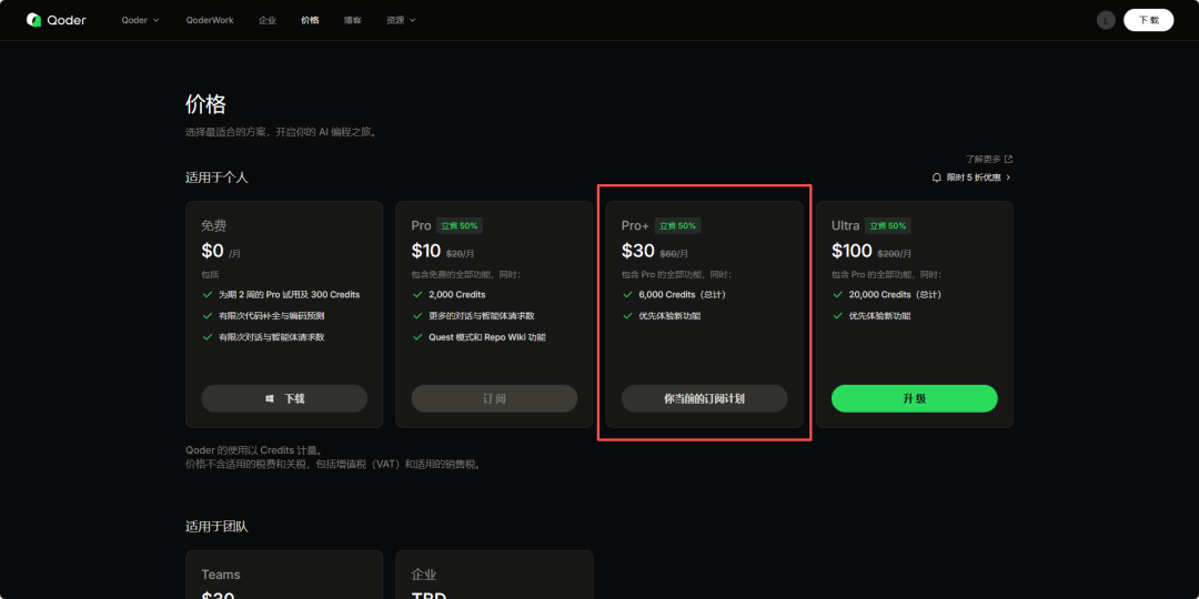 如果你是 Pro 用户,或者还没订阅,可以先注册 Qoder,领取 Pro Trial 的 300 Credits,然后去 Waitlist 申请 Experts Mode 体验资格,Pro 用户会优先审核。
