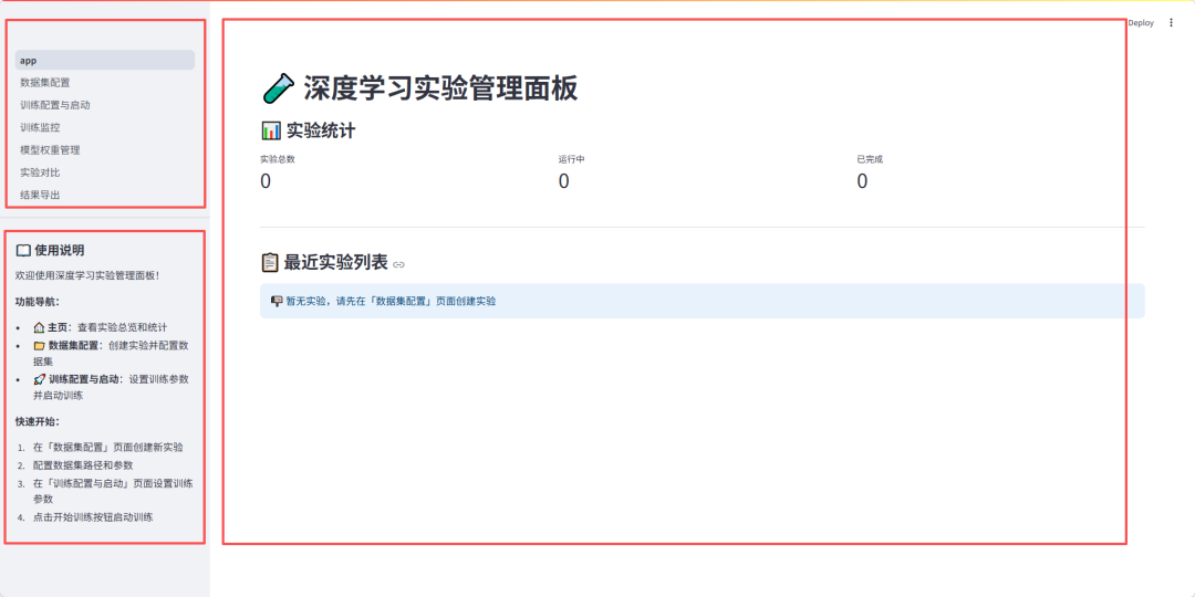 输入命令之后,浏览器就打开了 Qoder 开发的深度学习实验管理面板: