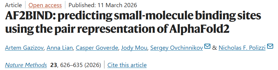 相关研究以「AF2BIND: predicting small-molecule binding sites using the pair representation of AlphaFold2」为题,于 2026 年 3 月 11 日发布在《Nature Methods》。