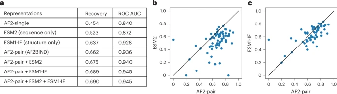 图 3:AF2 的配对表示在结合-残基预测方面最为有效。