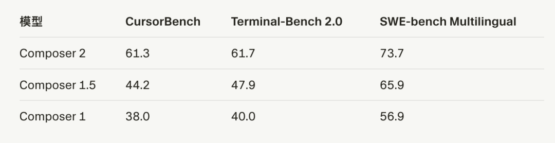 Cursor 宣称,Composer 2 在他们用上的所有基准测试中都取得了大幅提升。