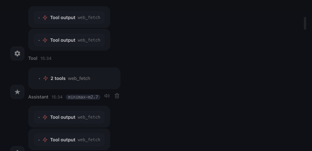 自动调用数据源:收到指令后,不需要用户主动告诉它需要读取哪类资料,OpenFinClaw 自动触发多个工具调用。系统界面显示其连续执行了数次