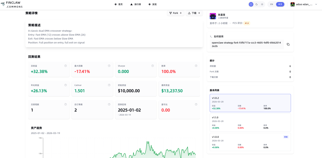 此外,用户还可以一键让 金融龙虾学会策略回测和提交到进化策略社区: