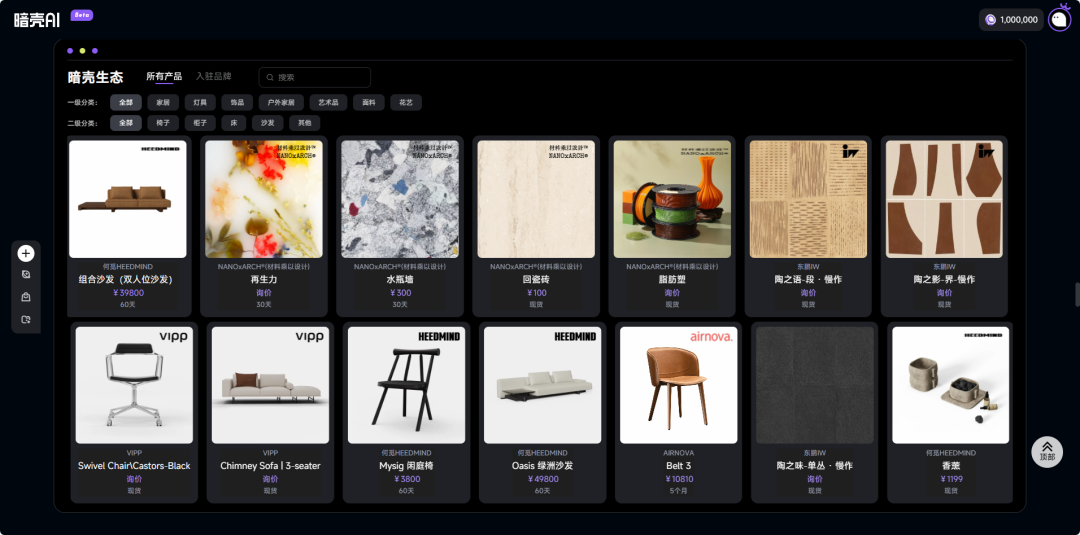 Lovart 在平面设计领域已经是行业典范。那空间设计领域呢?暗壳要做的就是这件事——空间设计的 Lovart