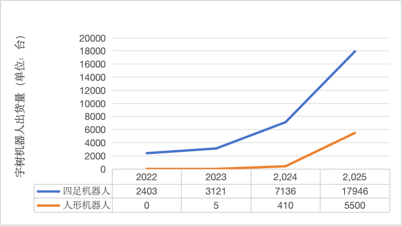 出货量则解释了收入和利润为什么能够同步抬升。2022 年,宇树四足机器人销量为 2403 台,人形机器人尚未形成销售;2023 年,人形机器人仅卖出 5 台;到 2024 年,人形机器人销量已升至 410 台,四足机器人则达到 7136 台;而 2025 年前 9 个月,四足机器人销量跃升至 17946 台,人形机器人达到 3551 台,全年纯人形机器人累计出货量超过 5500 台。