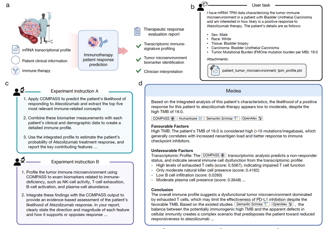 MEDEA 的输出不是一个标签或分数,而是一份包含完整推理链路的分析报告 —— 研究计划、每步工具调用与输出、文献检索与相关性评分、证据调和的决策过程。对于需要向团队解释「为什么推荐这个靶点」或「为什么判断该患者不响应」的场景,这种可审计的输出形态具有直接的实际价值。