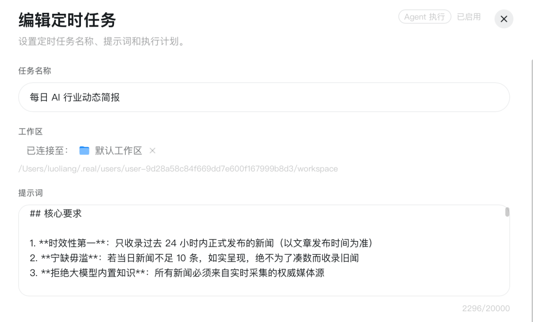但是调整完提示词之后,这个固定任务跑出来的效果就非常有质量了。