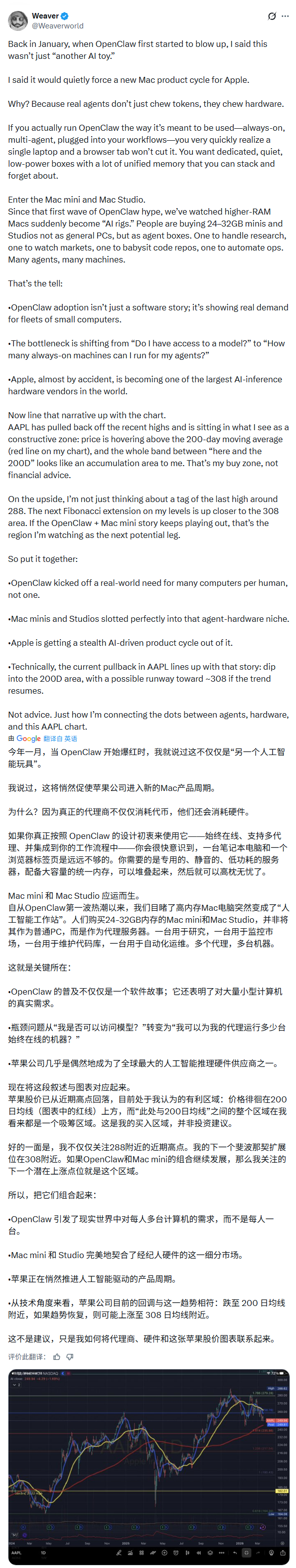 Creator Buddy创始人兼CEO亚历克斯·芬恩(Alex Finn)对此判断称:苹果将赢得AI之战。他认为,当功能强大的个人AI出现时,消费市场的反应已经说明了问题,人们出去买了Mac Mini。