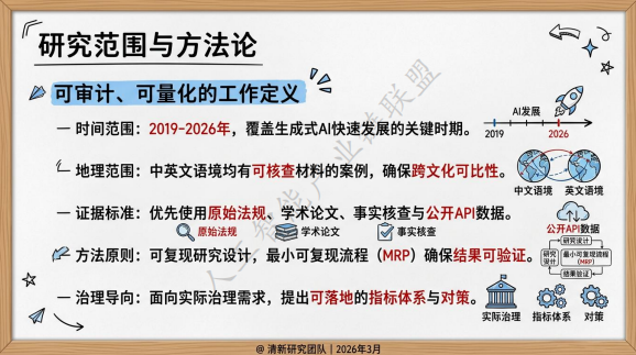 报告提出可复现的指标体系与检测实验设计,结合中欧美监管实践,形成可执行的四维治理框架与情景预测。