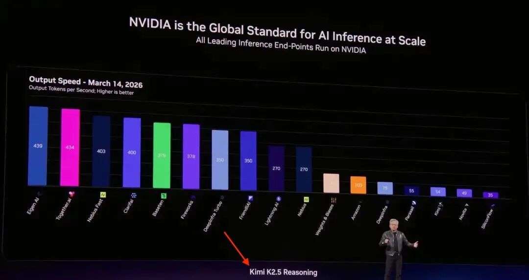 在 NVIDIA GTC 2026 的主题演讲中,黄仁勋再次用 Kimi K2.5 模型作为推理服务商的性能测试基准。2个月前,在CES 2026上,老黄同样用DeepSeek和Kimi的模型来验货下一代芯片的性能。官方议程中,杨植麟的演讲主题直接指向了 “How We Scaled Kimi K2.5”。在黄仁勋搭建的全球最高技术舞台上,分享如何提升 Token 学习效率与优化集群吞吐,这标志着 Kimi 的方法论正在从“一家之言”演变成“行业通识”。