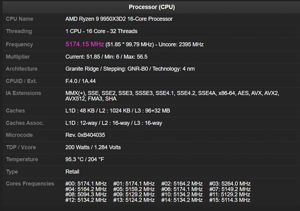 这里128MB的L3缓存数据大概率是错误的,因为锐龙9 9950X3D2是AMD首款双CCD均搭载3D V-Cache的处理器。