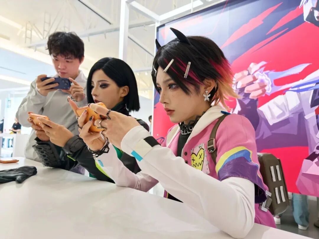 这次活动地场内场外,处处透着一种苹果品牌调性的极简风。没什么张扬的指示牌,纯白的墙壁与大面积的落地玻璃,构成了一个纯粹的交流场域。到了内场,几款行业内名气位列前茅的国产游戏陈列于此——《无畏契约手游》《明日方舟:终末地》《绝区零》《鸣潮》《异环》《无限暖暖》《逃离鸭科夫》以及《数码纪元:Elu 传说》。