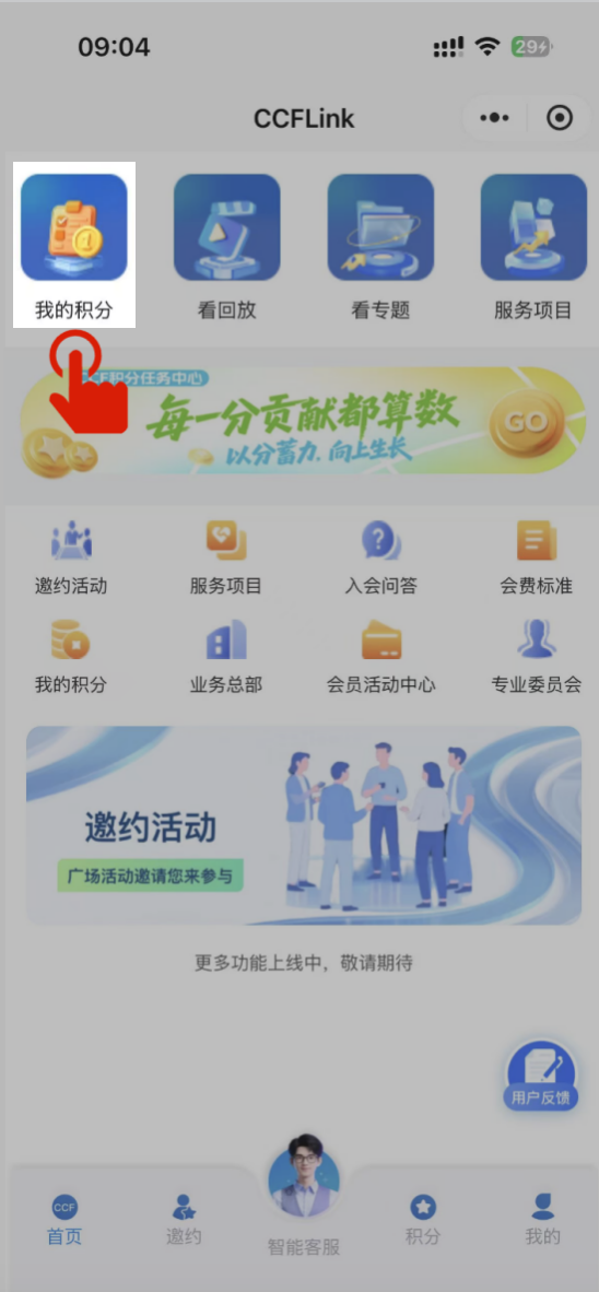 CCFLink 小程序 → 我的 → 积分中心 → 兑换好礼