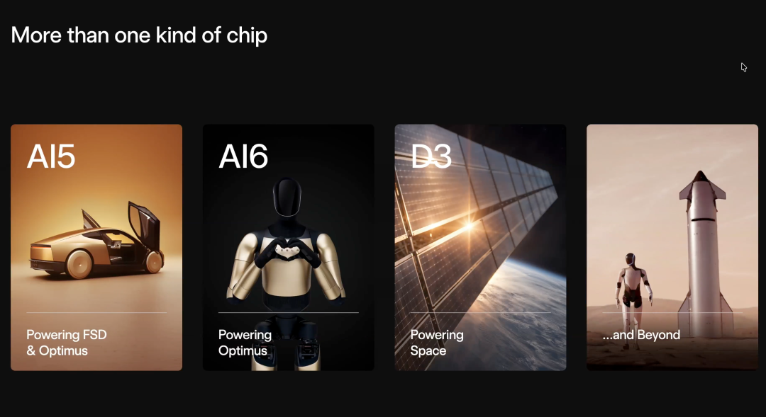 第一,端侧推理芯片,主要面向特斯拉的擎天柱Optimus人形机器人和自动驾驶汽车。马斯克预计,未来人形机器人的年产量将达到十亿至一百亿台,是汽车年产量的10至100倍,因此对端侧芯片的需求将极为庞大。