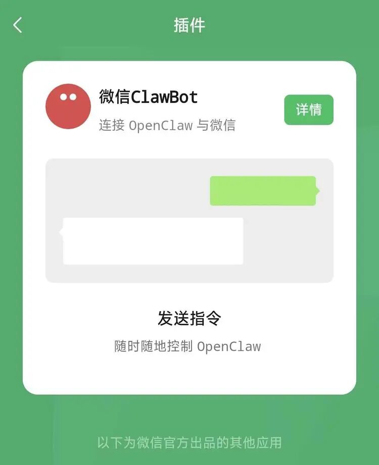 其次,你的微信号需要有"微信 ClawBot"插件权限。据官方描述,插件仍在逐步开放中。