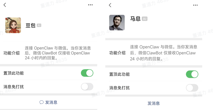 它可以是龙虾,可以是马总,甚至可以是豆包。在微信这个大部分人最熟悉的社交场景里,这种沉浸感是此前任何接入方式都给不了的。