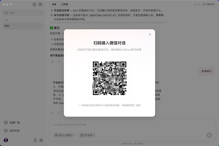 如果你觉得上述操作麻烦,下载腾讯的 QClaw,更新到 v0.1.15,点击左下角的"微信连接",扫一扫就能搞定,不用输入命令。