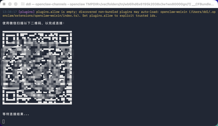 执行后会弹出二维码,用微信扫一扫即可完成连接。