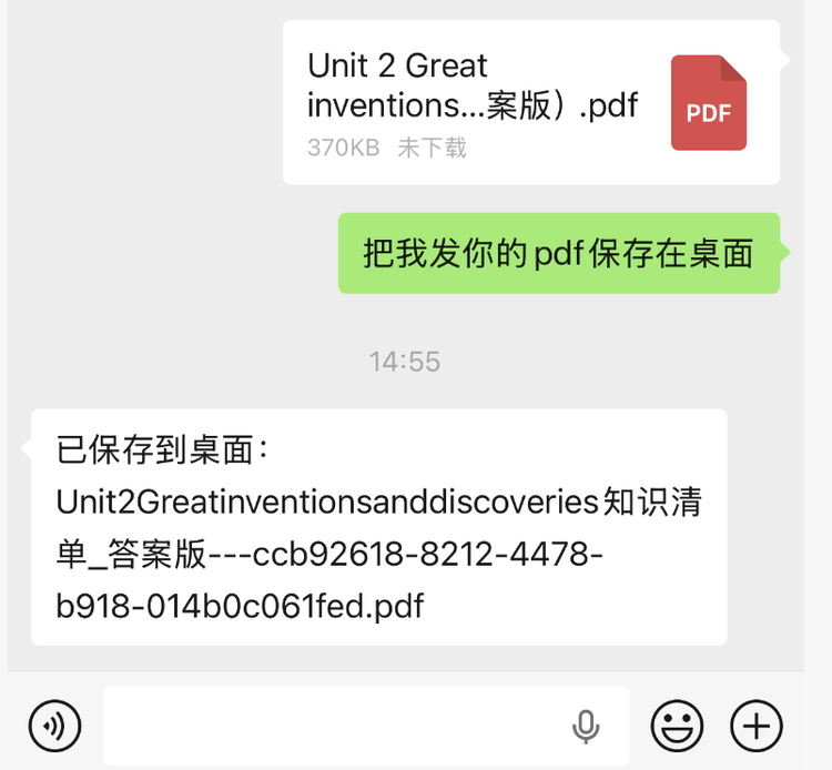 此外,龙虾可以把你手机上的文件保存到电脑桌面,方便跨设备传输。