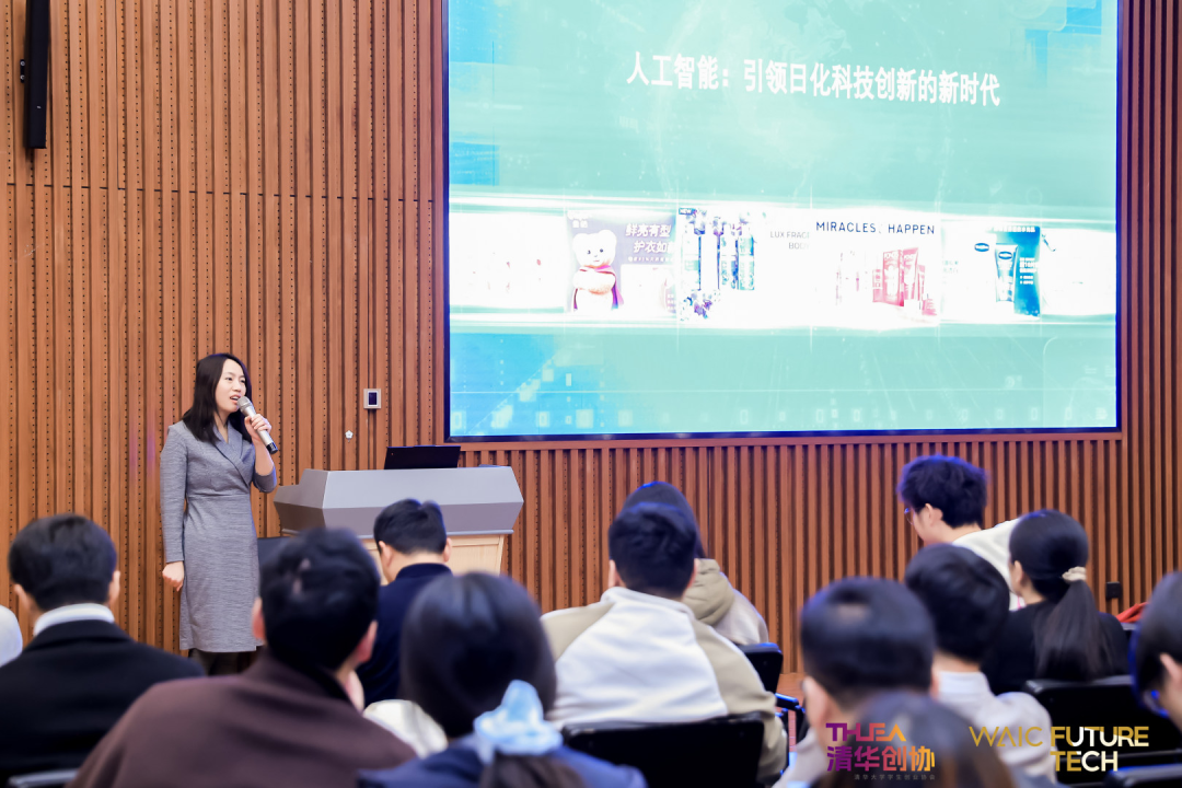 联合利华研发策略与运营负责人梁燕(Erica)从产业端出发,分享了“人工智能科学:引领日化科技创新的新时代”。她介绍了联合利华如何将AI深度融入研发的各个环节:与深势科技合作搭建“AI for Science”平台,加速新成分发现;运用AI工具进行3D包装的生成式设计,将创新周期从一年缩短至六个月;利用AI Agent捕捉社交媒体趋势,实现敏捷产品创新。她特别提出了一个行业挑战:如何利用AI生成科学上准确、视觉上惊艳的产品机理视频,期待与AI创业者共同探索。