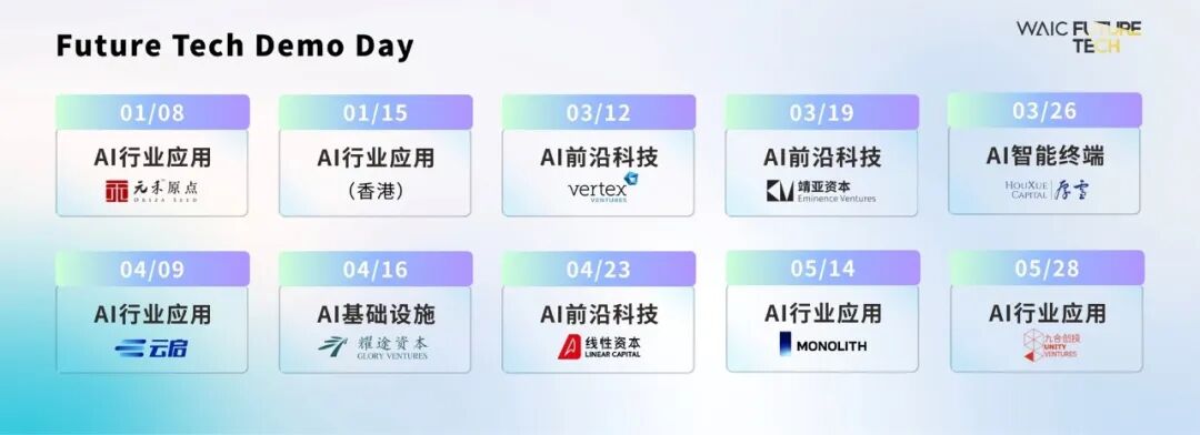 WAIC FUTURE TECH作为世界人工智能大会的官方全球创新平台,将持续为早期AI初创企业链接投资者、产业界与人才。我们期待在7月的WAIC主会场,看到更多优秀的创新项目登上舞台,被世界看见。✨ 我们不止见证未来,更亲手创造未来。