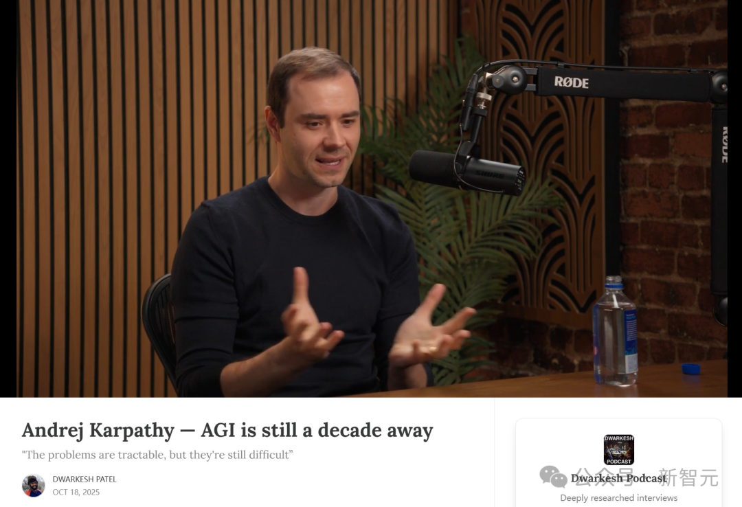 2025年10月,Karpathy做客Dwarkesh Patel的播客,语气完全不同。