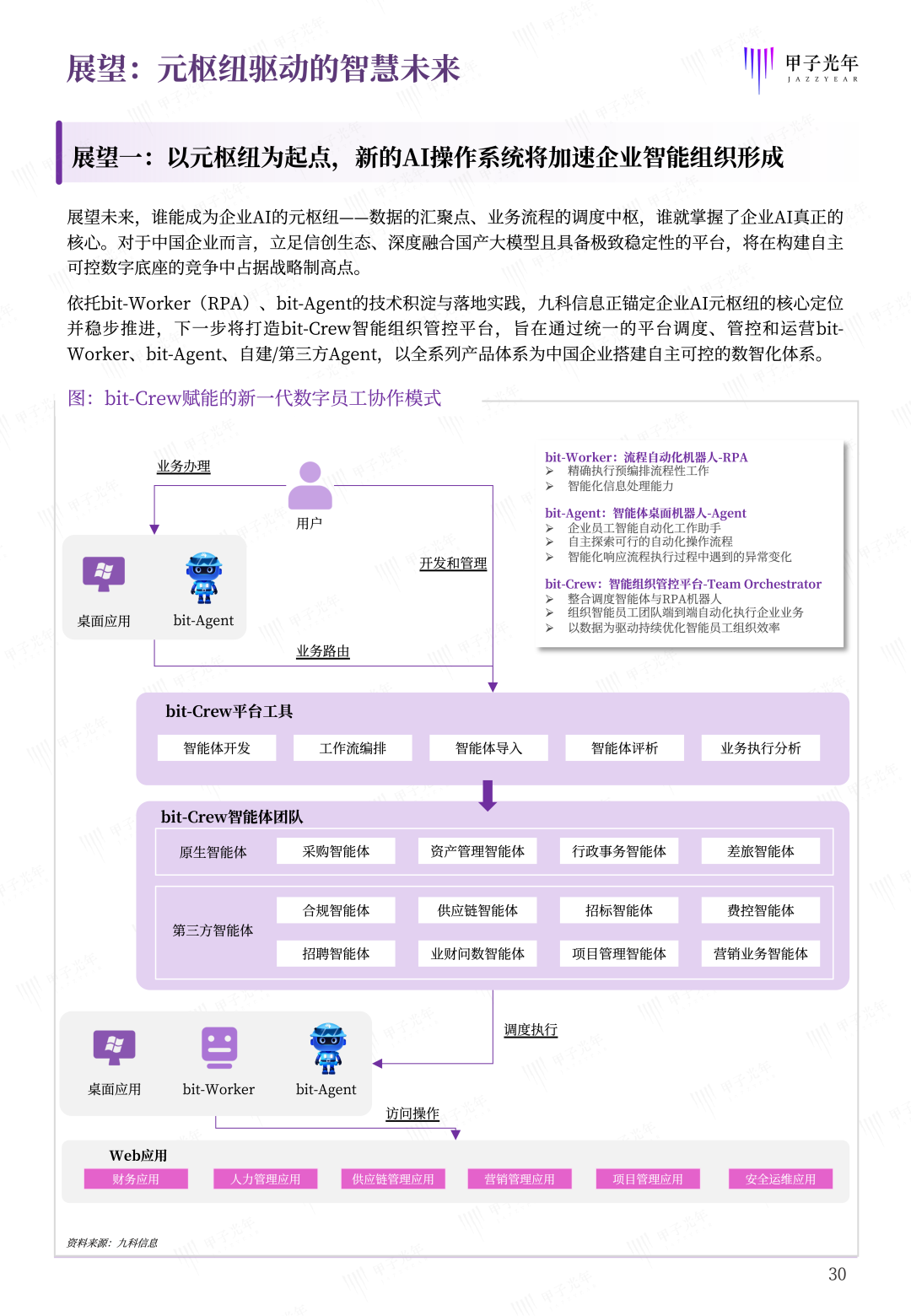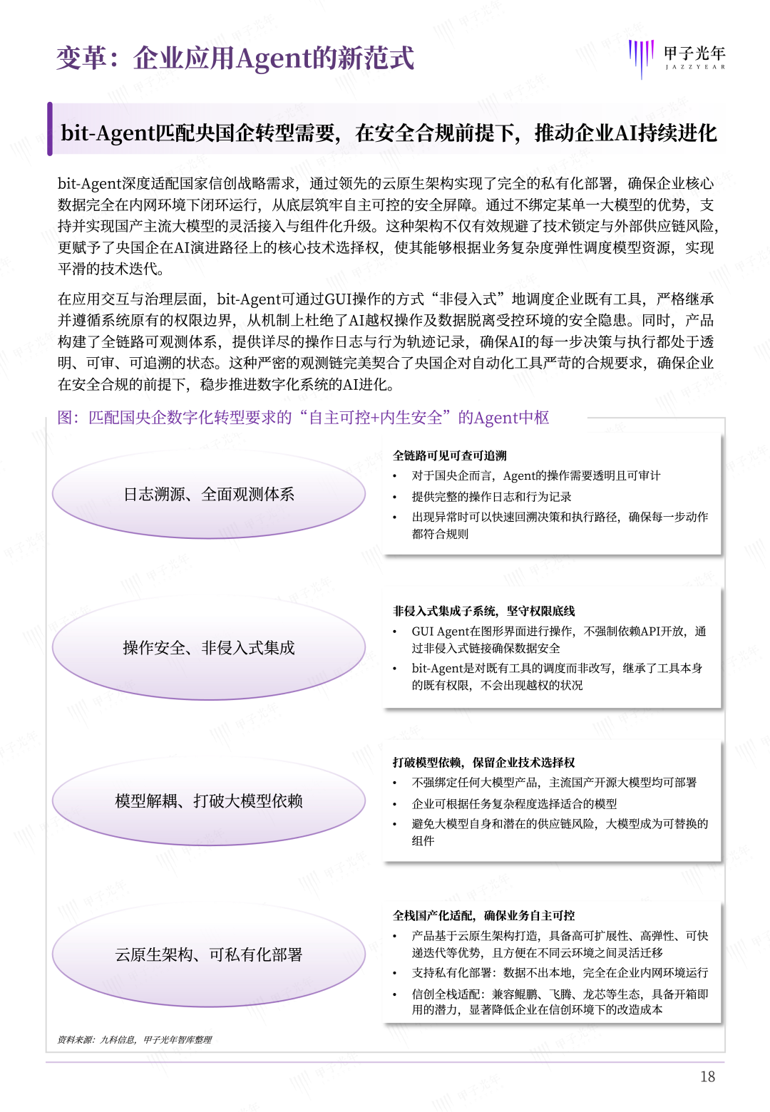 本白皮书始终传递一个核心理念:AI在当前并非万能。企业引入Agent,不是为了追逐技术潮流,而是为了解决真实业务问题。九科信息bit-Agent的设计哲学正是建立在这一清醒认知之上——它强调人机协同而非完全替代,强调可解释性而非黑箱决策,强调渐进演进而非激进变革。企业级Agent应用需要时刻把AI放在“安全可控的笼子”里,让技术真正服务于业务,实现技术与业务的稳健融合,这才是企业级AI应用的正确打开方式。