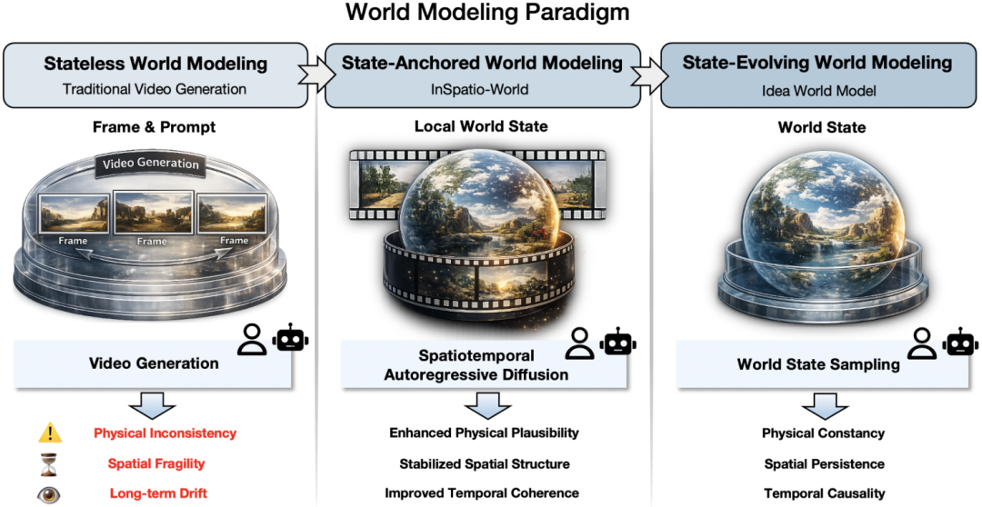 除了在数据获取上的创新思路,影溯的另一突破在于提出了状态锚定世界建模(State-Anchored World Modeling)范式,实现了世界模型从视觉模拟向物理仿真的本质跨越。