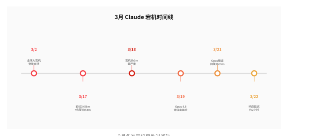 值得一提的是,在这一系列宕机事件中,Anthropic的信息披露相对透明——至少比行业平均水准要好。3月2日宕机发生后17分钟内,Anthropic就在官方状态页发布了公告。3月17日那次,公司甚至主动说明"目前只有免费用户受影响",帮助付费用户快速判断自己的情况。
