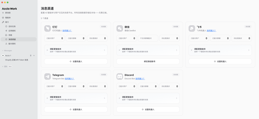 你可以通过 Telegram、微信、飞书、钉钉这些渠道给它发指令、查进度,不用一直盯着电脑。整个交互方式就是聊天,跟你跟同事说「帮我把这个事办了」差不多