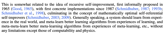 抛开他之前让他出名的的很多文章,比如LSTM,现在另一批他的早期个人研究最近也显露锋芒:从 Godel Machine(Recursive Self-Improvement 的早期工作),到 Making the World Differentiable以及World Models(与 David Ha 共同推动了World Model的定义和流行),再到 Fast Weight Programmer 以及与 Imanol 合作的 Delta Network(Linear Attention 的重要参考)等等,都在逐步证明他在“大气层”。