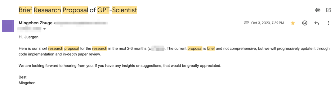 诸葛鸣晨:最遗憾的,是错过了 AI Scientist 这个方向。2023 年下半年,我同时构想了 GPTSwarm 和 GPT-Scientist 两个方向,也都写了 Proposal给Jürgen(如下图是关于GPT-Scientist的Proposal)。