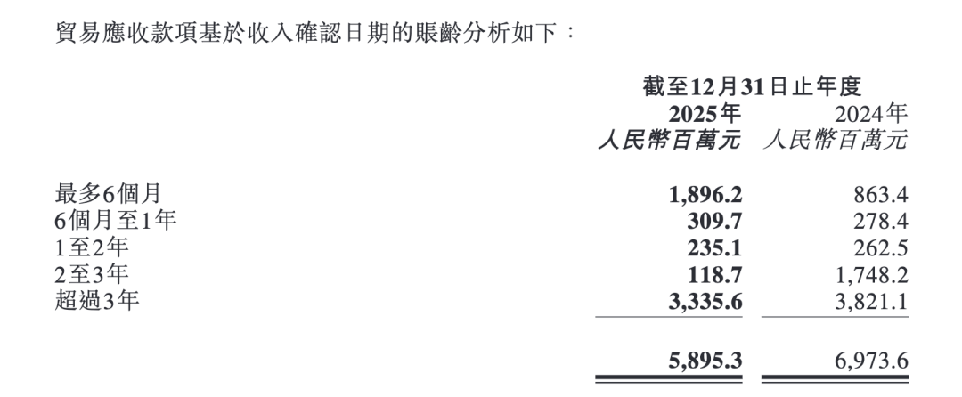 截至2025年年底,商汤科技的营收帐款为58.95亿元,其中账期超过3年的营收帐款为33.36亿元,较2024年略有好转。