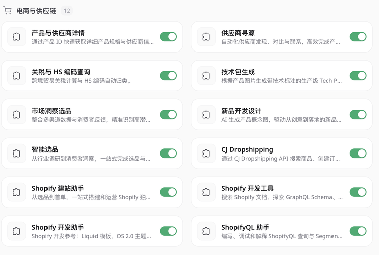 Accio Work内置了多个电商运营、企业管理等领域的专业Agent,并为它们定制了大量做生意要用到的“技能包(Skills)”。从供应商寻源、智能选品,到开店助手、内容策略,各类真实的生意需求,这些技能都覆盖到位。