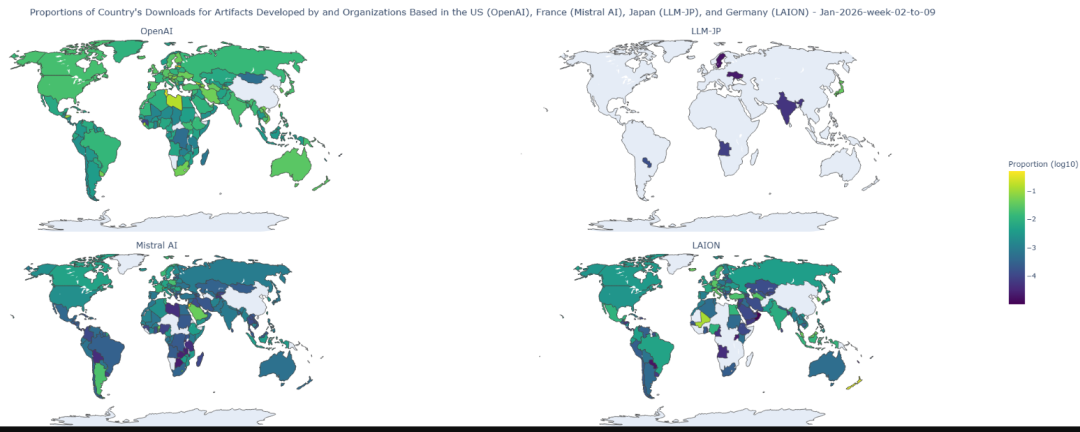 投资正在产生回报。模型和数据集通常在开发地区使用最多,开发者往往选择最能代表其语言、反映类似技术和应用需求的模型。