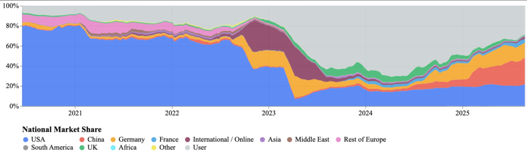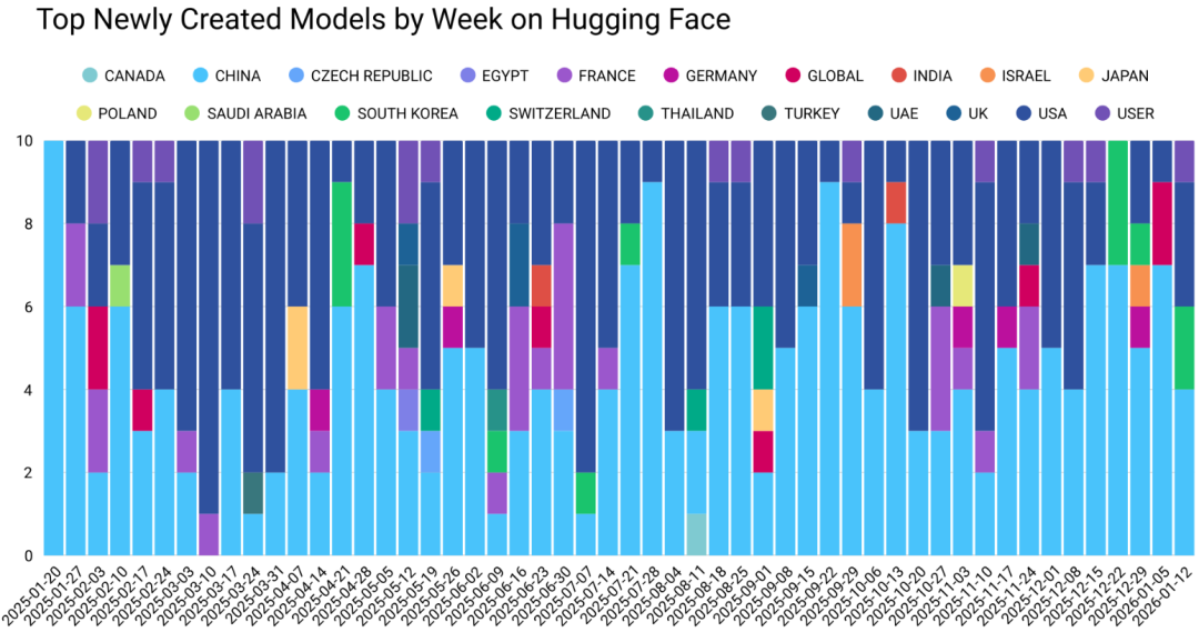中国首次超越美国,成为Hugging Face平台月下载量最大的模型来源国。